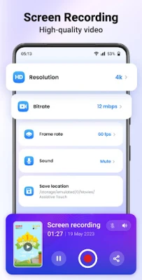 It provides an on-screen floating panel for quick controls, including screen recording, junk removing, opening apps, etc. You can customize the opacity, size and color of the panel and icon as you like.