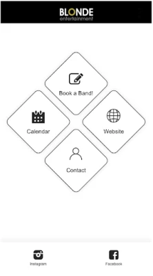 This app holds Blonde Entertainment's schedule, Facebook and Instagram, a booking form, and our website. Users are able to access all Blonde Entertainment bands' schedule and book them directly from the app.