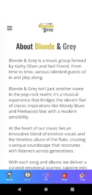 Blonde & Grey is a musical group playing together since 2019. Since then we have released two albums. Within this app you will have access to more details about the band and its music, including writeups about the albums.