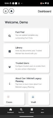 Record details of properties, pensions, investments, bank accounts, insurance policies etc, to maintain your asset portfolio. Categorise your assets, describe them, record account details, assign values and define the ownership—all within the secure Carr Mitchell Legacy Planning app.