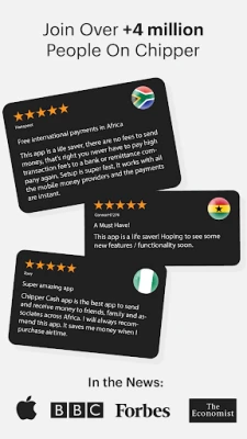 Enjoy free local transfers and the lowest cross-border rates with Chipper Cash, a cross-border payments app, where over 4 million people send & receive money in and between Nigeria 🇳🇬, Kenya 🇰🇪, South Africa 🇿🇦, United States of America 🇺🇸, Ghana 🇬🇭, Uganda 🇺🇬, Rwanda 🇷🇼, and UK 🇬🇧.