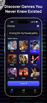 With the Donna AI song generator, crafting original music has never been easier or more enjoyable. Simply type a description, and our AI music generator quickly produces unique, high-quality tracks tailored to your imagination. Whether you're looking for catchy pop hits, emotional ballads, powerful rock anthems, or vibrant AI rap tracks, this versatile AI song generator offers hundreds of genres and moods to match your musical vision perfectly.