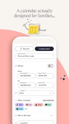 - Create events for one, some or all family members easily so you can see who needs to go where
