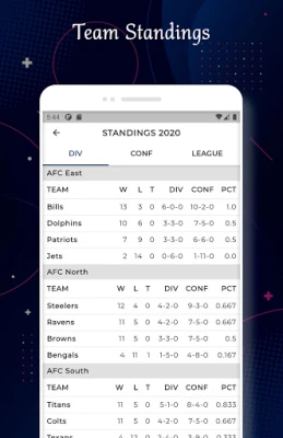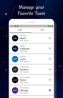 ✓ NFL Teams information by conference (AFC & NFC).
