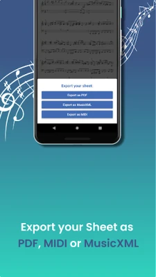 » The desktop version covers even more features like converting sheet music from Youtube, uploading MP3 Files and download as PDF, MIDI or MusicXML files.