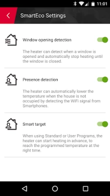 Identify each individual appliance with a name and a picture. Organize, control and access easily all your appliances on the main screen. Set target temperatures, modes or programs for each individual heater. Turn on energy saving modes such as window opening detection or presence detection . Easily create new weekly calendar programs to optimize the room temperature depending on your need. Check individual heater or global history to better control your energy consumption.
